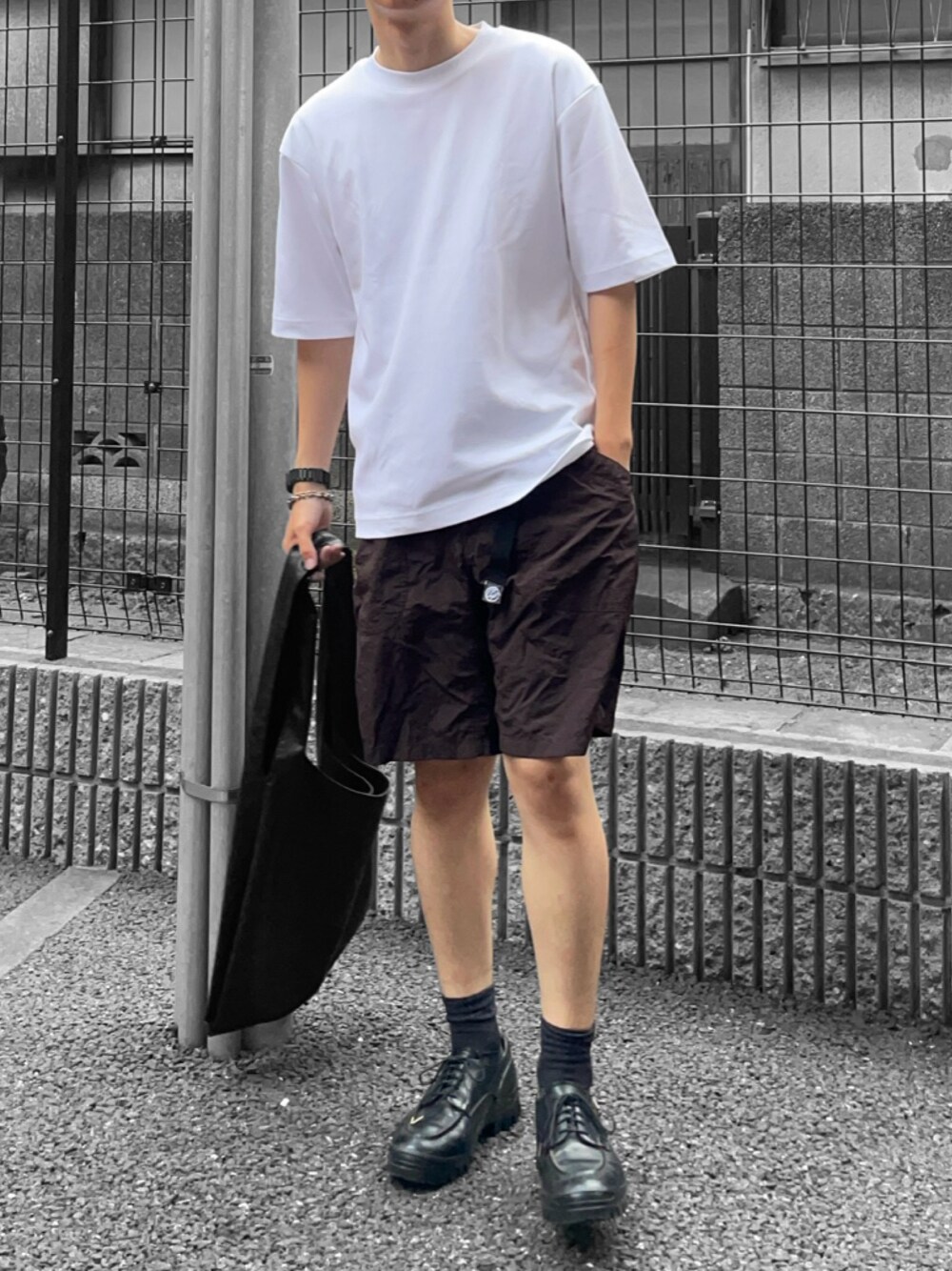 白T✖️ブラウンハーフパンツコーデ! 夏は小物がよく映える🤤 お問い合わせ→InstagramのDMまで📩
