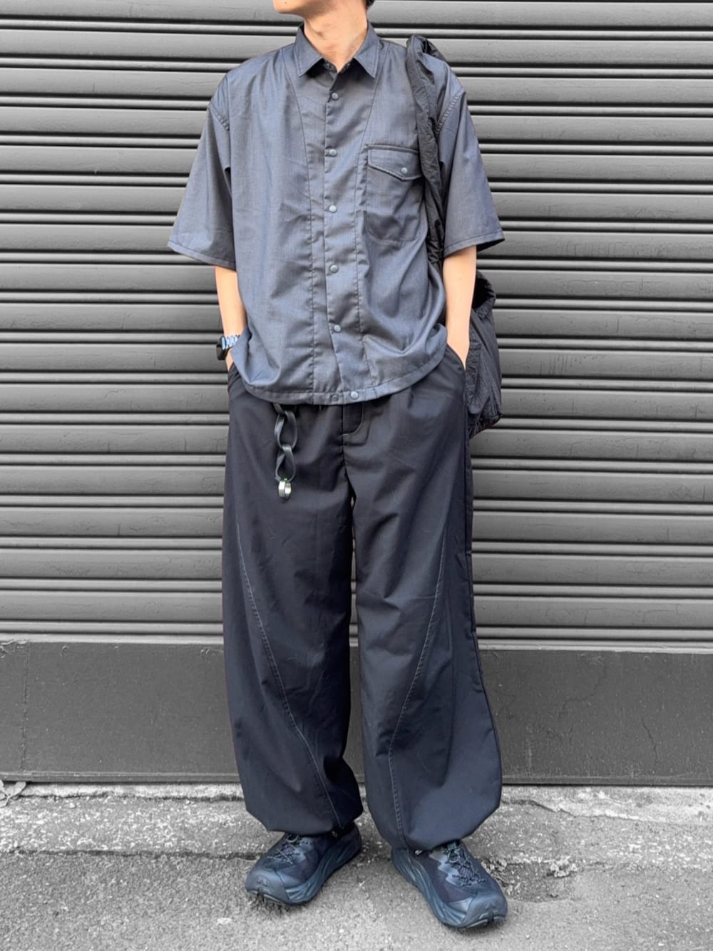 hatahiroのシャツ/ブラウス「CURVE STITCH SNAP WORK SHIRT /カーブステッチスナップワークシャツ」を使ったコーディネート