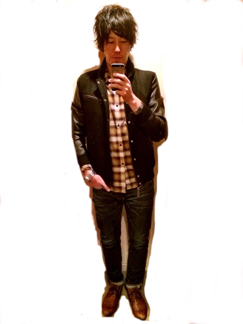 はっとのスタジャン「URiD メルトン/ラムレザースタジャン 」を使ったコーディネート