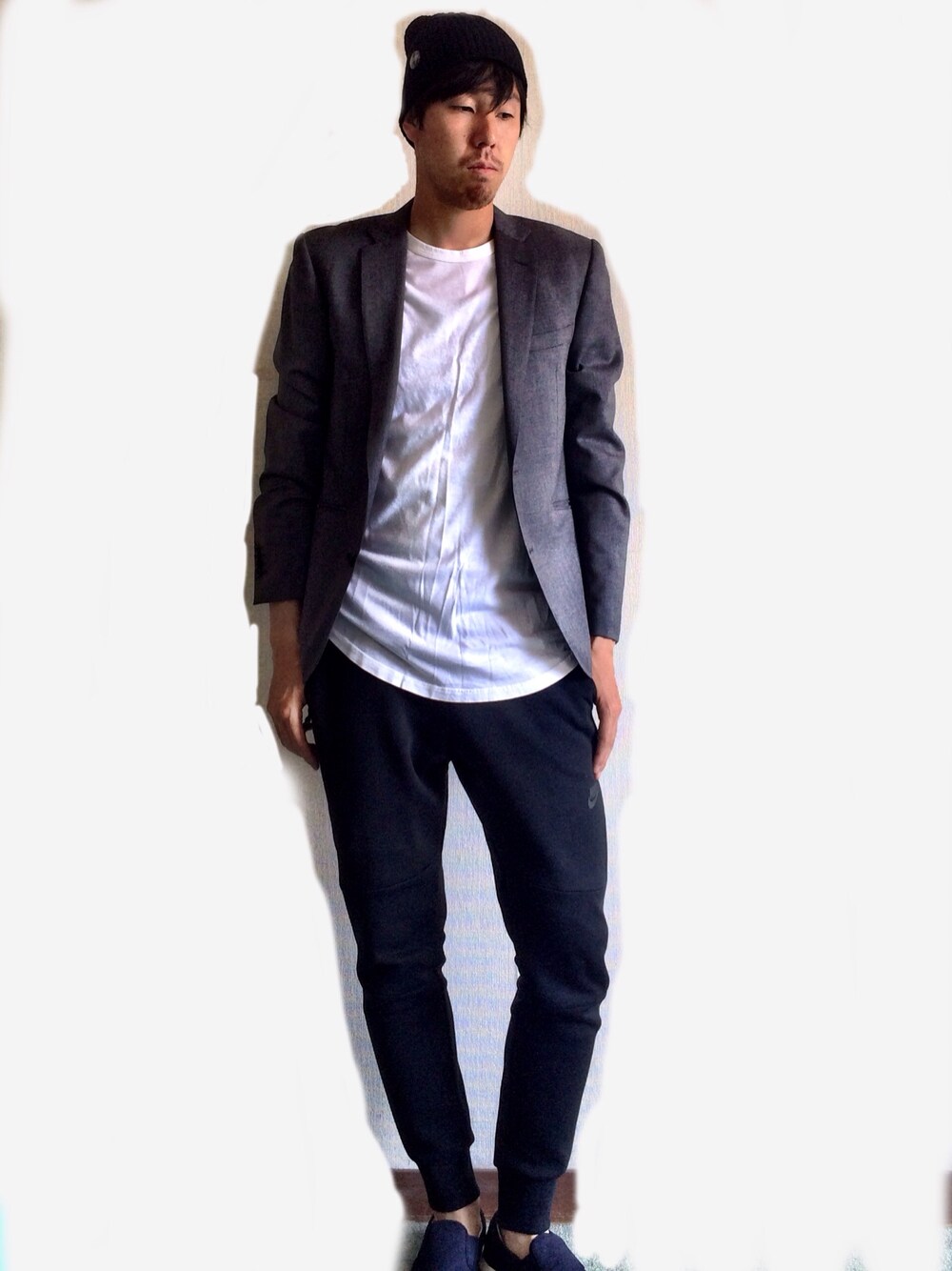 ラウンドカットのカットソーが何かと便利。 珍しく靴履いてますが見切れてます。