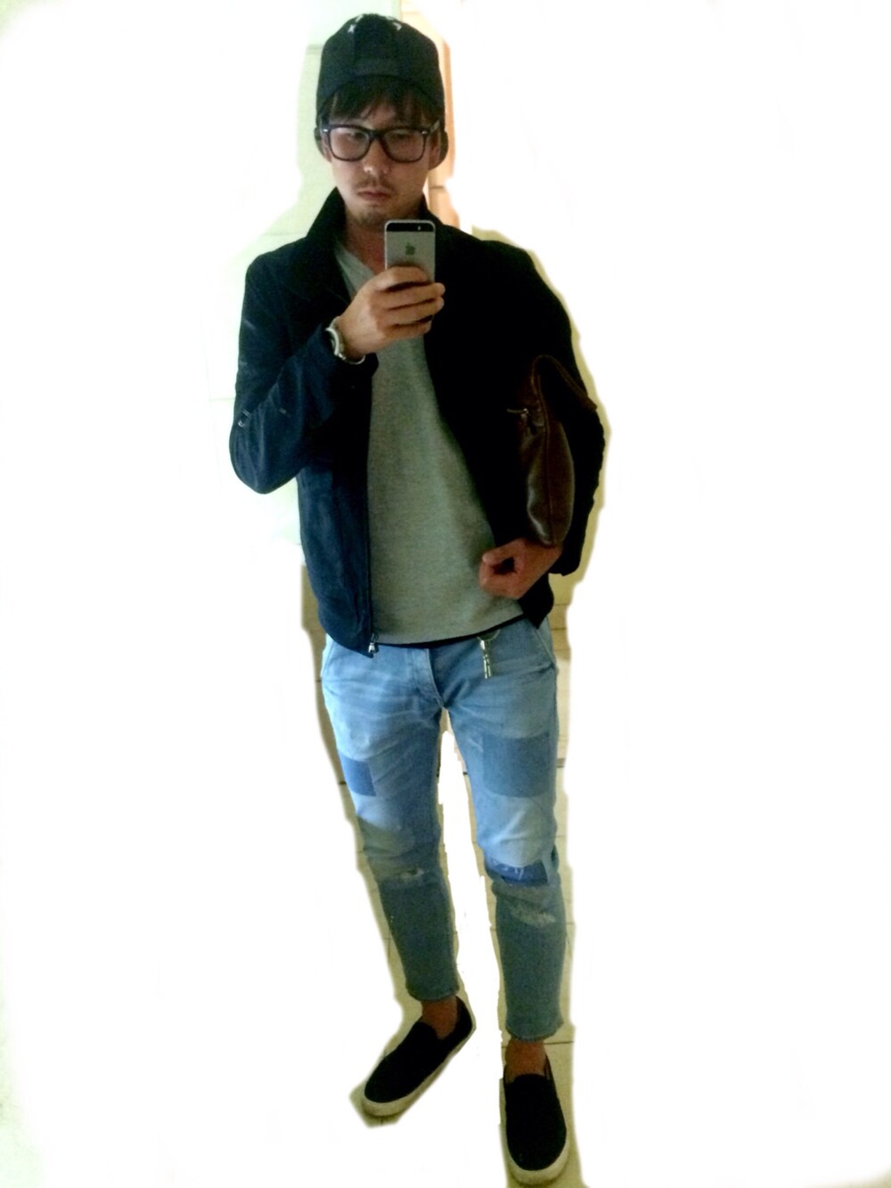 夜はちょいと真面目にコーディネート。風吹いて涼しいので上にブルゾン着用。