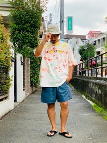 ハタノのTシャツ/カットソー「タイダイワッフルハーフスリーブTee トレンド/シンプル/総柄/タイダイ/ビッグTEE/カジュアル/キレイ目/ストリート/アメカジ」を使ったコーディネート