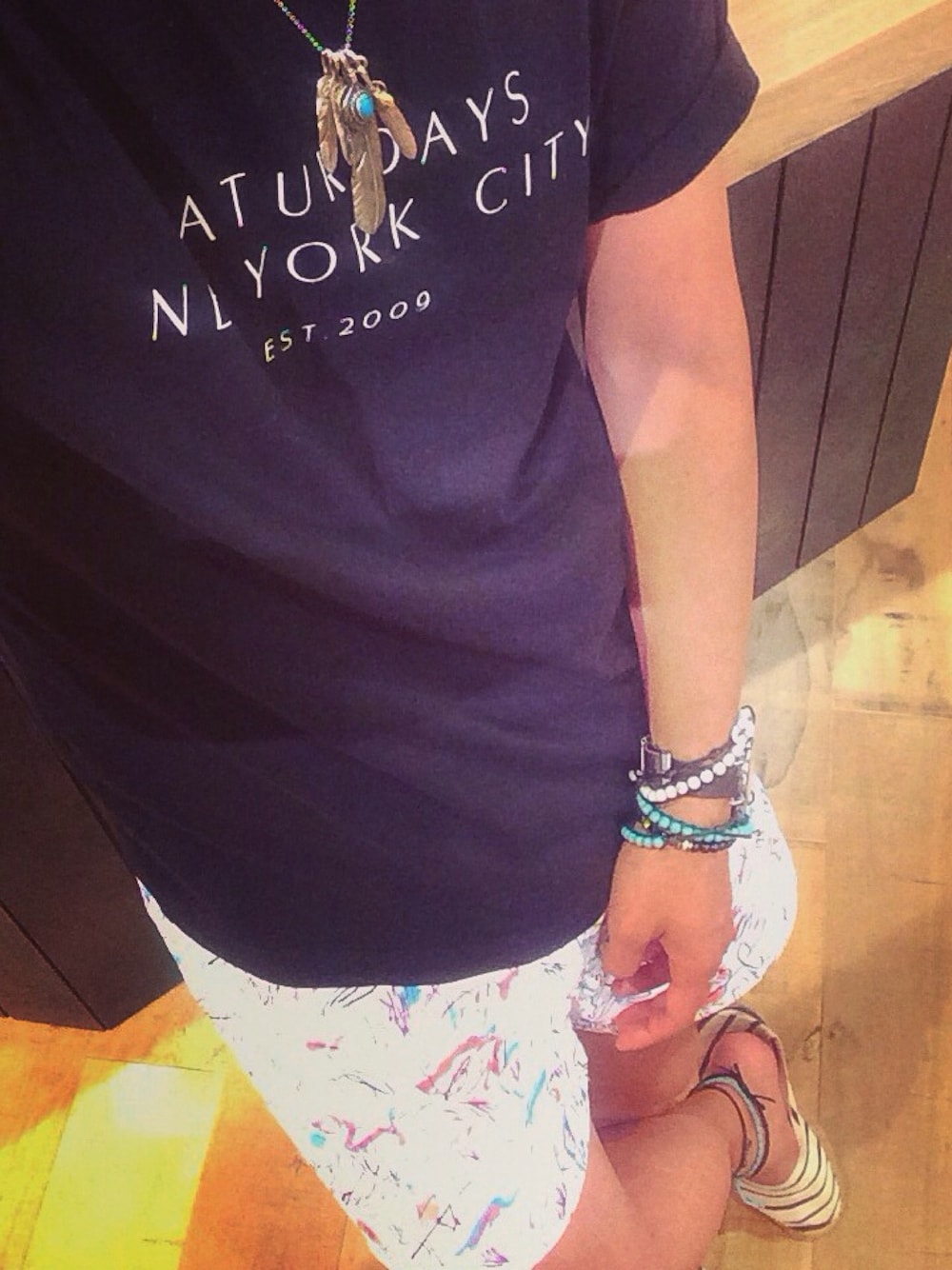 上下サタデーズよねー。 ボードショーツ去年のだけどデザイン1番好き! ひざ上感がギャルw