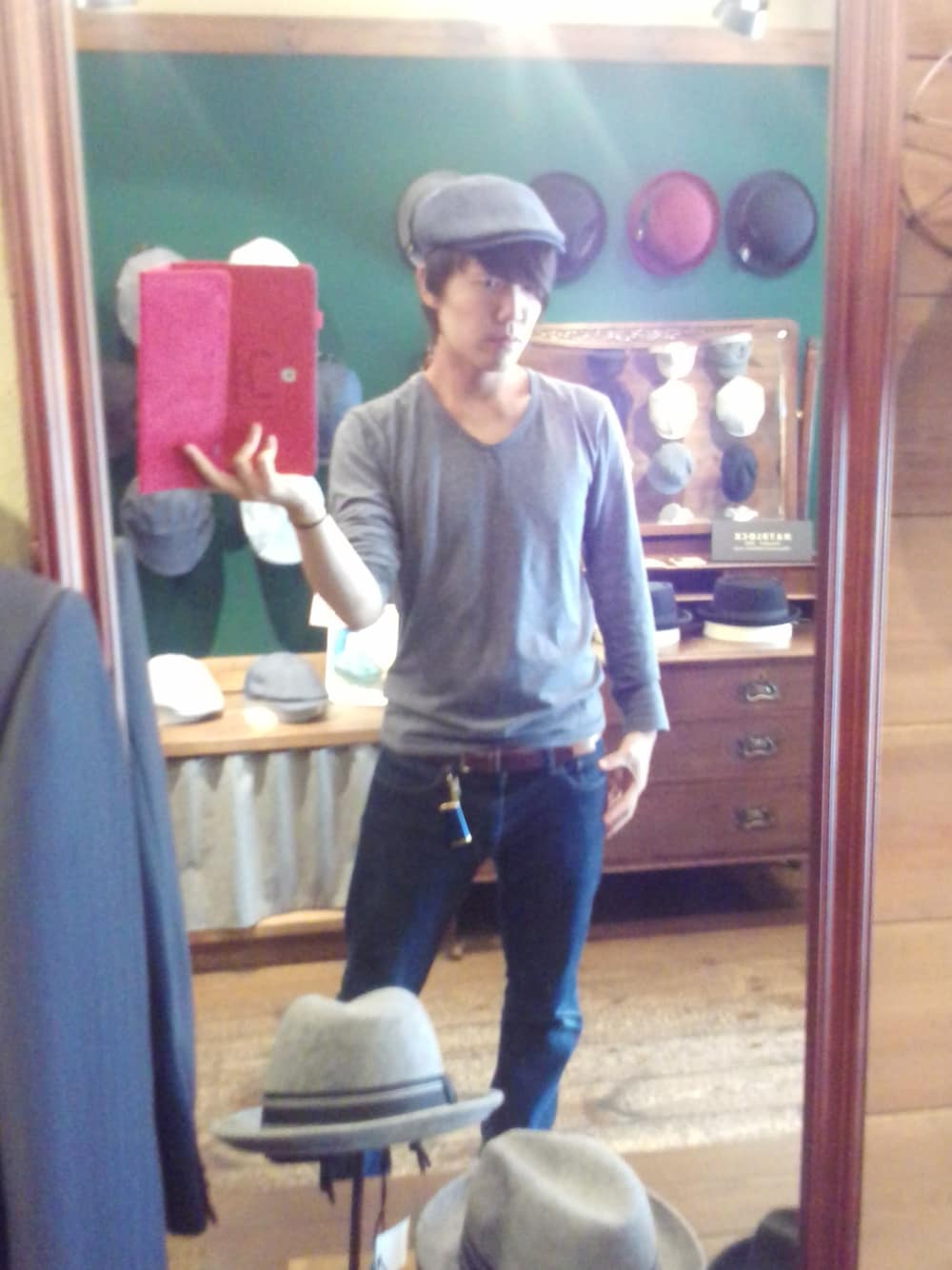 HATBLOCKオリジナルの少し深めのハンチングです。深いネイビーの色が全体の色をまとめてくれます