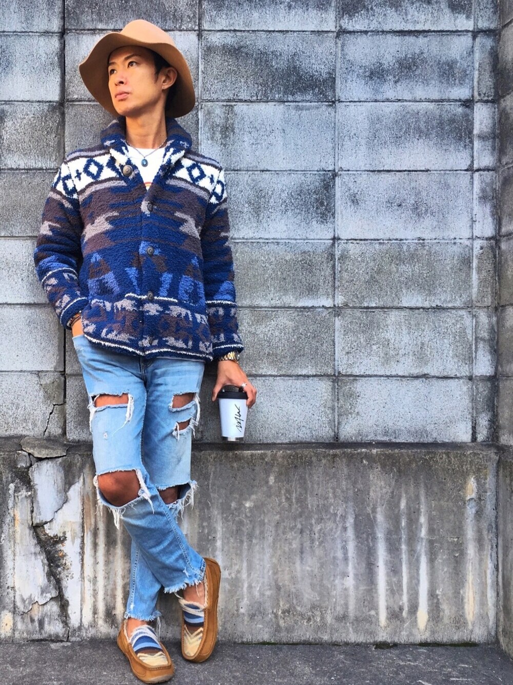 zozoでゲット🎶 モコモコネイティブ柄カーディガン💙 instagram→kojiro_8