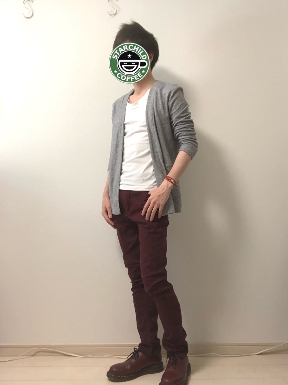 グレーカーディガンとタンクトップ。 このカーディガンもサラッとした質感で良きです。