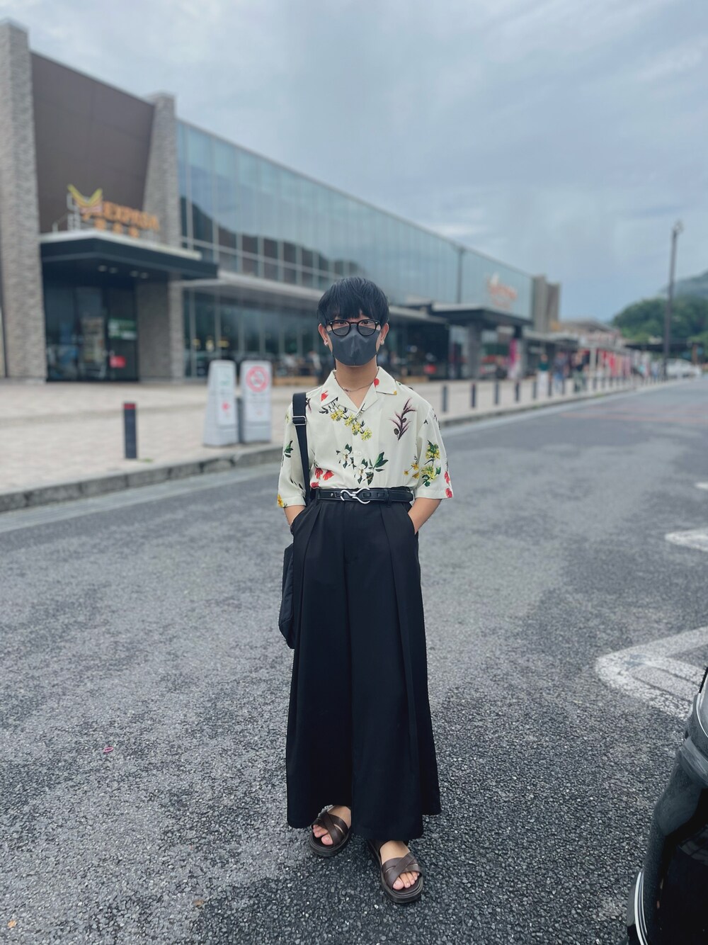 花柄のシャツを活かすためにシンプルなコーディネートに合わせて、レザーやシルバーの小物で素材感を遊ばせたコーディネートです 是非参考にして頂けると幸いです