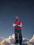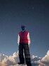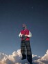 point ・シャツの襟をベストと帽子の赤で囲み顔周りに印象を与えた ・マスクやレザーなどの黒で締めつつインナーの白で外しを入れた