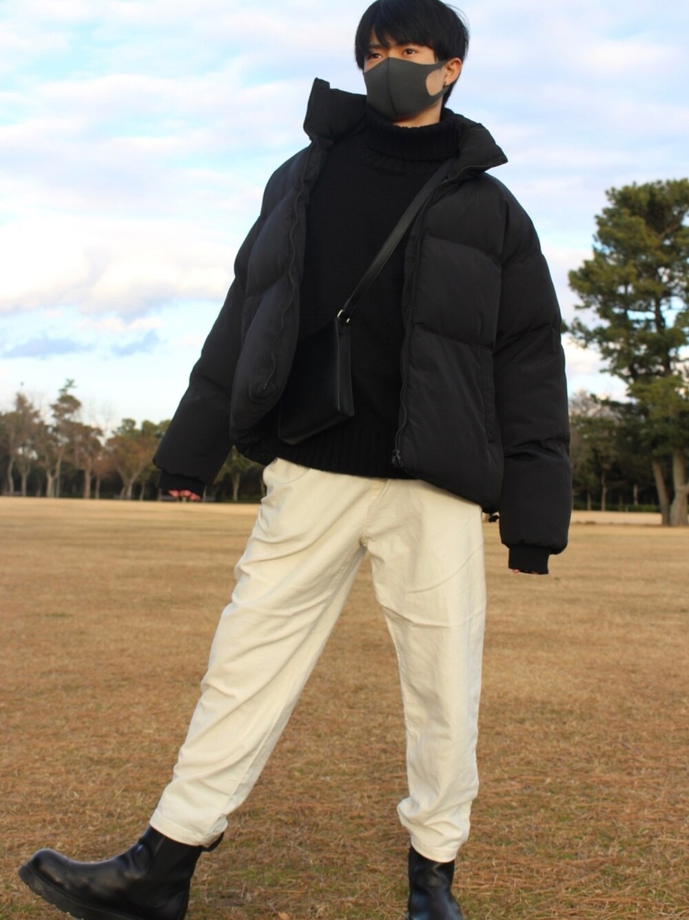 キレイめダウンコーデ✨ 下を白パンツにすることでキレイめにしつつ、しっかりとダウンを強調することができます! Instagramでもファッションや小物、美容などの投稿をしています!良かったフォローしてください🖤 Instagram → @hayacchi7