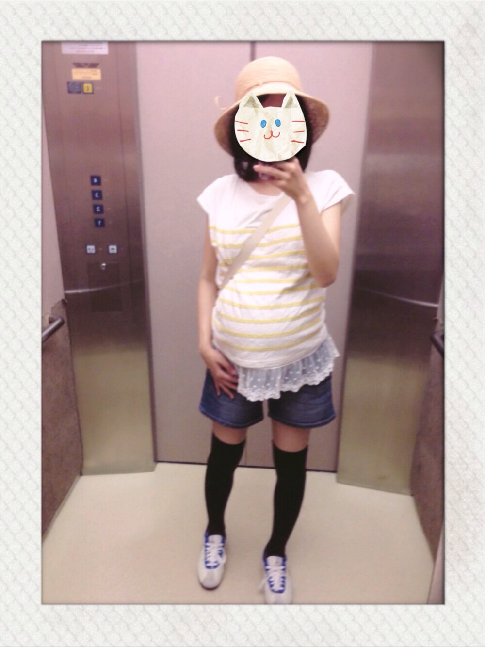 【35w4d】 マタニティマッサージへ。 ロングキャミは、手持ちのトップスに合わせやすくて妊婦向けですね (どこで買ったか忘れたのでブランド名はタグより)