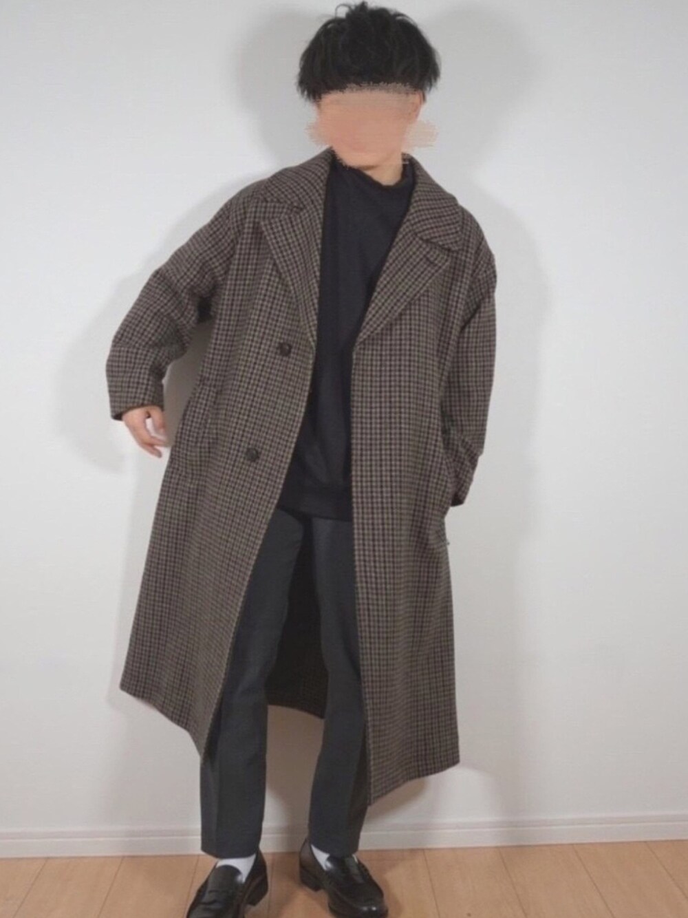 ミニスタ のチェスターコート「ウールチェックオーバーコート」を使ったコーディネート