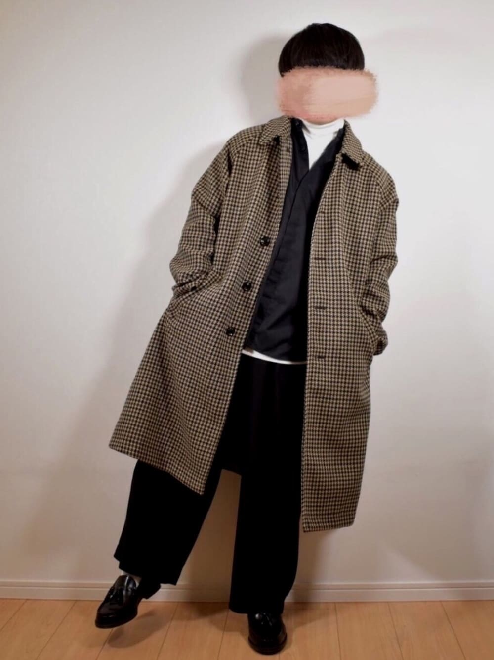 いつも来て頂きありがとうございます😊 —————今回のレディースアイテム—————- なし ———————スタイルテーマ——————— ゆるガンクラブチェックコーデ🦉 ————————アイテム説明———————— 【🧥】 アウターはcoenのガンクラブチェックコートSサイズを着用 【👕】 インナーはHAREのスタンドカラーシャツSサイズ、GUのタートルネックTのMサイズを着用 【👖】 パンツはWEGOのワイドスラックスSサイズを着用 【👞】 シューズはHARUTAのタッセルローファーを着用 —————-コーディネートに関して—————- 久々にガンクラブチェック✖︎ワイドパンツ このコート価格に対してクオリティが本当に高いんです✨ シルエット・色味・質感どれも⭕️ チェック柄を取り入れるときのポイントは・・・ モノトーンと組み合わせることです‼️ そうすることでチェック柄のアイテムが際立って見えます👀 以前このコーデのスラックス版をあげていたんですが、 パンツをスラックスからワイドに変えるだけで印象がガラッと変わり カジュアルによった印象になります🚶♂️ 今回は柄物のステンカラーコートなので 変にかっちりしすぎず スラックス、スキニー、ワイドパンツとモノトーンのアイテムなら多分なんでも合わせられると思います笑 coenのコートをべた褒めする回になっちゃいましたが、 見ていただいてありがとうございました🍁 ————————-その他情報————————- instagram📸 hat_petit_wear (ミニスタ)※WEARよりは頻度かなり少ないです。(今後アップデート予定) Twitterは一時保留(準備中⚠️) 日々のコーディネート、低身長なりの工夫、 レディースアイテムの感想、オススメなど発信していきます。よろしければ是非、お願いします🍁