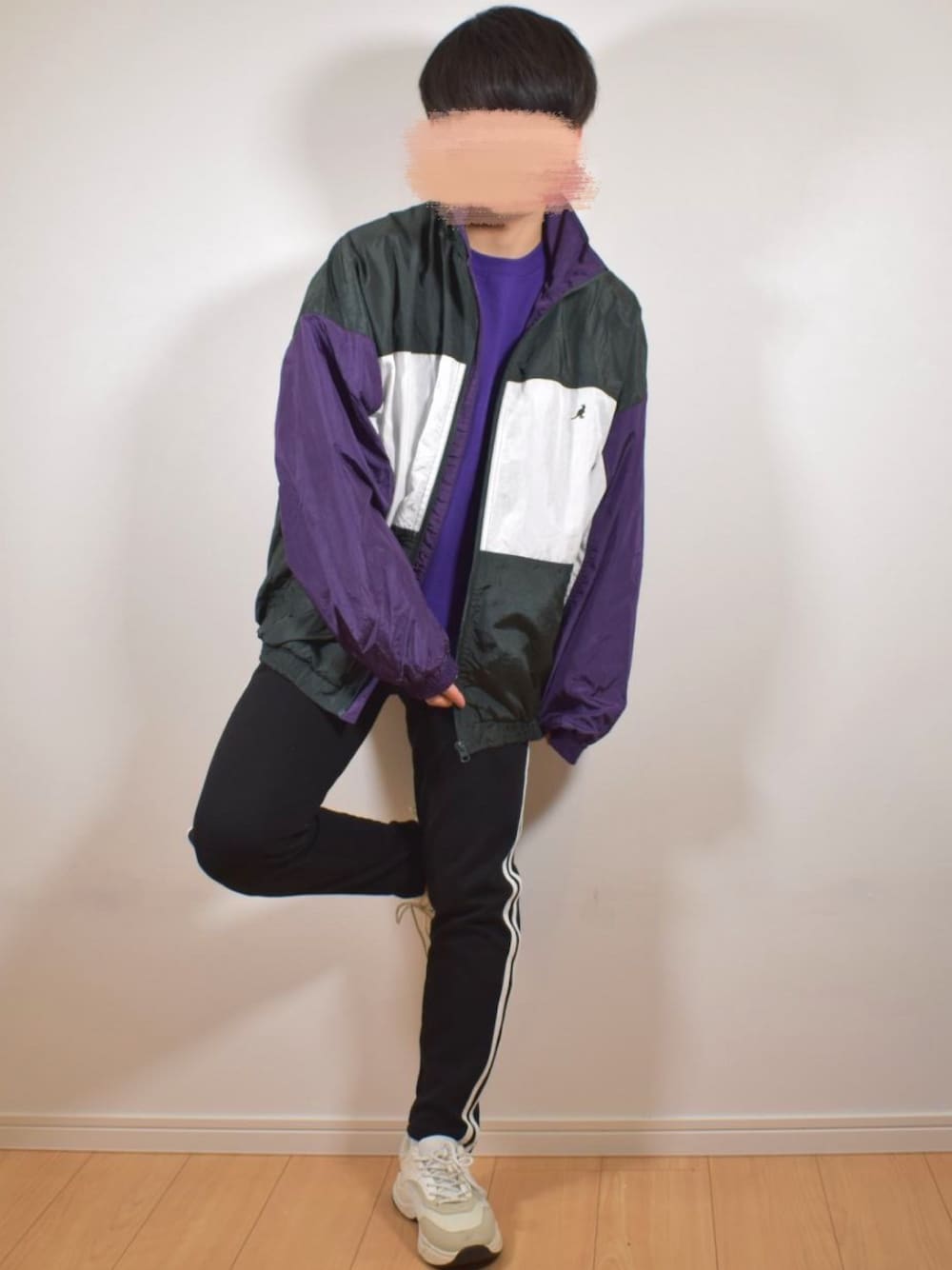 ミニスタ のナイロンジャケット「【KANGOL】 ワンポイント ロゴ 刺繍 ビッグシルエット 切替 ナイロン ジャケット」を使ったコーディネート
