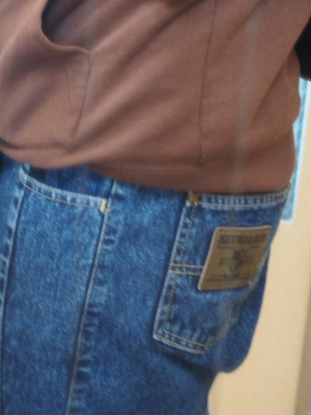 もともとこども用(肥満児用)のウエストの大きいタイプのジーンズです、画面では見えませんがウエストゴムもあり、85センチほどまで伸びます、右ポケット部に革ラベルが取り付けられています、おそらく昭和時代若しくは90年代(当然田無市・保谷市時代だった)のもののデッドストックと思われます、所沢駅内にて1月26日撮影。