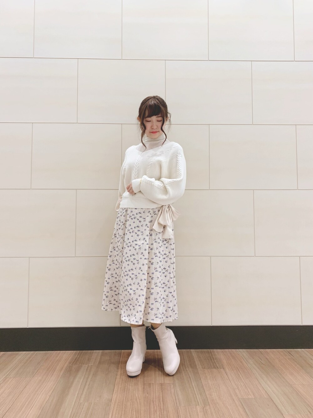 全身白コーデ💕 淡めのブルーの花柄が差し色になって色ボケしません✨