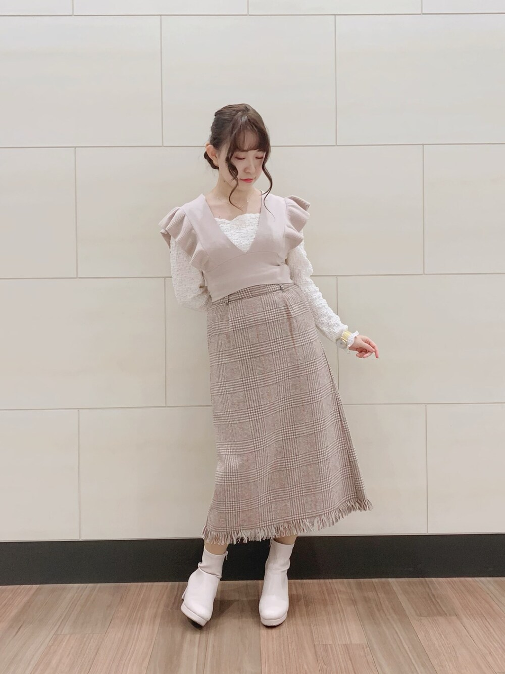 フリンジがデザインされたスカートは起毛素材で柔らかい雰囲気にしてくれます💕