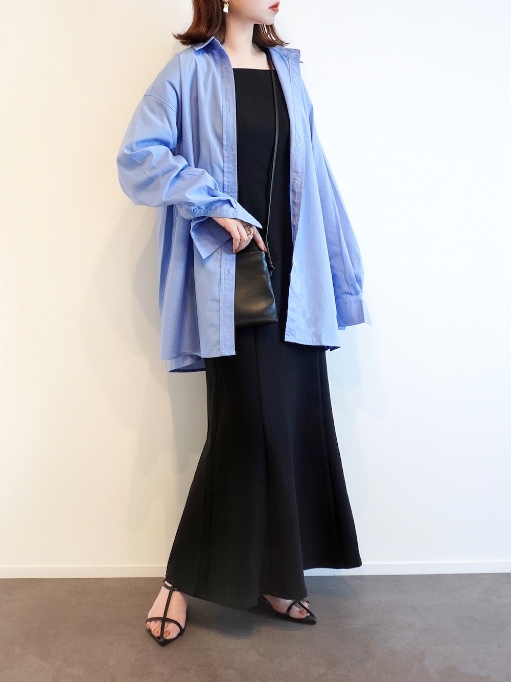 探し求めていた 絶妙なサックスブルーに一目惚れした おニューのシャツが主役…!🐋 適度にマニッシュな佇まいと オーバーシルエットが 洗練された印象の1枚で、 この薄すぎず濃すぎずの色味が まさに理想そのもので 届いた瞬間溜め息が出ました…💭 単体での着用はもちろん 梅雨時期の肌寒い日に 羽織りとしても重宝する 万能アイテムで、 サイドスリット入りのため さっと取り入れるだけで コーデにこなれた抜け感を プラスしてくれます👏 ほどよいハリがありつつも ゴワつかない生地感も お気に入りのポイントで、 カラバリもすごく豊富なため 早速 色違いも買い足したい 衝動に駆られています🥺 (私が購入したのは 「サックスブルー」ですが、 ブルーだけでも3色 展開されております…!) この日は、 シャツの色味を際立たせるため 他は全てブラックでまとめた シンプルコーデに。 マーメイドラインの綺麗な キャミワンピースは 以前ご紹介したRiberryさんのものです。 また、シャツの中に ミニショルダーを斜めがけすることで さりげないアクセントをつけました。 気になられた方はぜひ チェックされてみてください🌿 PR ・Riberry ・LA BAGAGERIE Instagram ▷ haushinka71