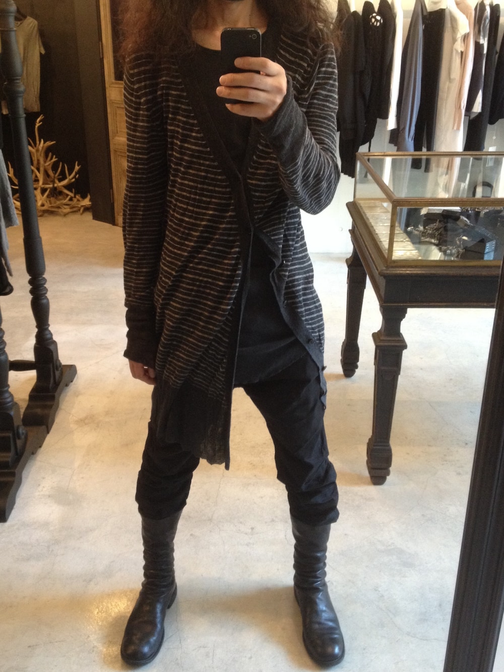 まだ5月なのに今日もとても暑いので、薄手のボーダーカーデをモードっぽく(^^)