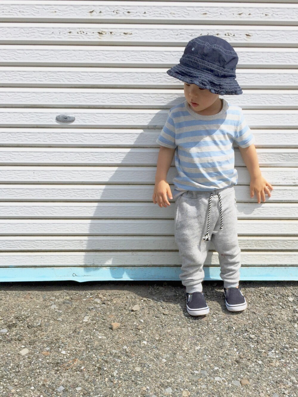 無印のボーダーT♡ ピンク持ってたら、大好きないとこ(のママ)から水色もらったー‼︎今度はピンクと水色で双子コーデしてみよう♡撮影できるかの方が問題^^; あるこだわり。 K「ゴーミーチューチューチャー!」 マ「集めてるねぇ! やっぱこっちに立ってもらっていい?」 K キョトン顔 マ「ごめん、こっちのシャッターがいい」 K「オケー!ゴーミーチューチューチャー!」 ゴミ収集車、気になる子供と、 背景のシャッターが気になる母。 水色シャッターと孤独なリンク^^;笑