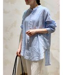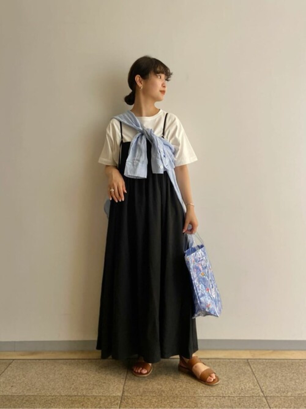 【tops】着用サイズ:F 蚊帳素材のマスクがセットのシンプルなカットソー。 インナーとしても使いやすいデザインです。 袖丈は肘くらいまでの長さで羽織なしでも安心して着れます。 洗濯 :手洗い可 伸縮性:あり 透け感:多少あり 裏地 :なし 光沢感:なし 色落ち:なし 【shirts】着用サイズ:F リネン素材を使ったシンプルなノーカラーのリネンシャツ。 ブルーのカラーをコーディネートの差し色として巻いてみました。 こなれ感が出て、巻くだけで普段と一味違うおしゃれな印象に。 是非挑戦してみてください! 洗濯 :手洗い可 伸縮性:なし 透け感:あり 裏地 :なし 光沢感:なし 色落ち:なし 【onepiece 】着用サイズ:F スカートのようなサロペットタイプのワンピース。 着丈はアジャスターで調節可能なので、色んな身長の方に着ていただけます。 後ろはウエスト位置の上くらいから後ろがざっくり開くのでインナーで楽しんでいただけます。 洗濯 :手洗い可 伸縮性:なし 透け感:なし 裏地 :なし 光沢感:なし 色落ち:なし 【bag】 BEARDSLEY 【sandal】着用サイズ:37