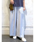 【tops】着用サイズ:F リネンバルーンブラウス ¥16,500→¥8,250(税込) (50%OFF) バルーンシルエットの袖がポイントのリネン素材のブラウス。 綿素材の裏地付きなので、肌に優しく着心地が良いです。 着丈は、裾にゴムが入っているのでお好みの着丈で着ていただけます。 袖口にもゴムが入っているので、ボリューム感の調節も自由自在です。 洗濯:手洗い可 伸縮性:ゴム部分あり 透け感:多少あり 裏地 :あり 光沢感:なし 色落ち:なし 【bottom】着用サイズ:1 細かなストライプ柄のワイドパンツ。 裏地無しですが透けないので、暑い夏でも涼しい一枚。 さらっとした履き心地で、ウエストもゴムなので楽ちんです。 着丈は155cmで1サイズを着用して、足首が隠れるちょうどいい長さです。 洗濯 :手洗い可 伸縮性:なし 透け感:なし 裏地 :なし 光沢感:なし 色落ち:なし 【sandal】着用サイズ:37