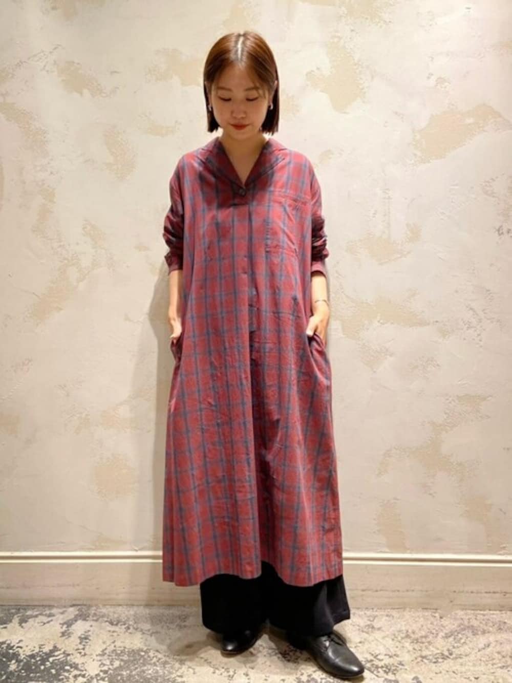 natsuko(BEARDSLEY)のワンピース「冬はニットと重ねて楽しめる開襟チェックワンピース」を使ったコーディネート
