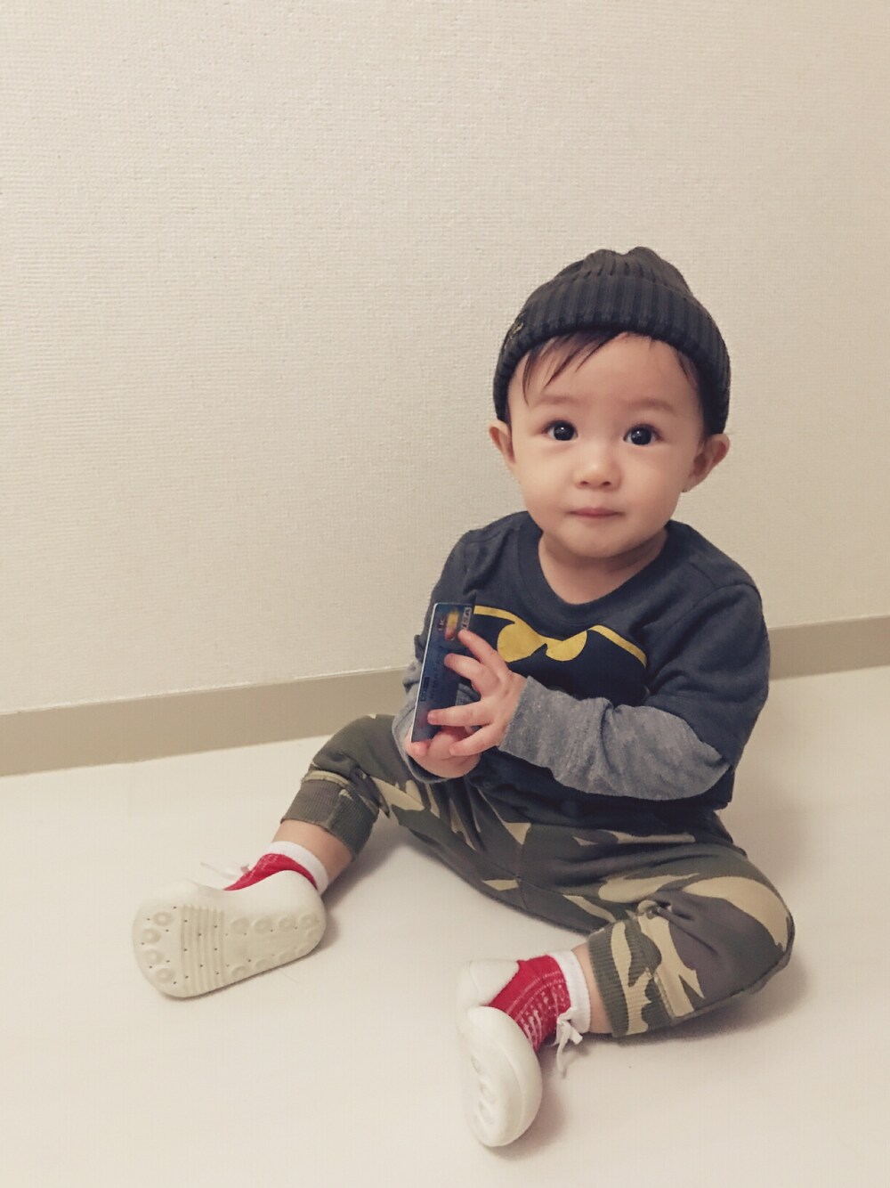 ご覧頂きましてありがとうございます😊 歩き始めの時にベビーフィートを履かせていました♪ コンバース風で可愛かったです。 シンプルなトップスの時はカモフラ柄パンツが重宝します★