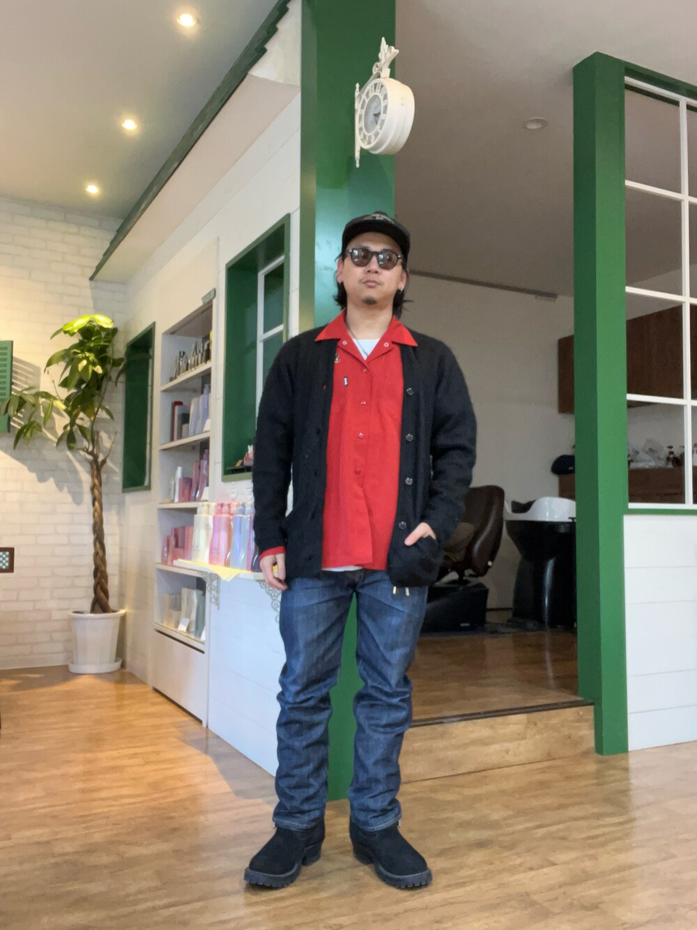 cap #thehwdogandco eyewear #juliustartoptical #ジュリアスタートオプティカル cardigan #urbanresearch #アーバンリサーチ shirt #schott #ショット pants #levis #リーバイス silver #larrysmith #ラリースミス