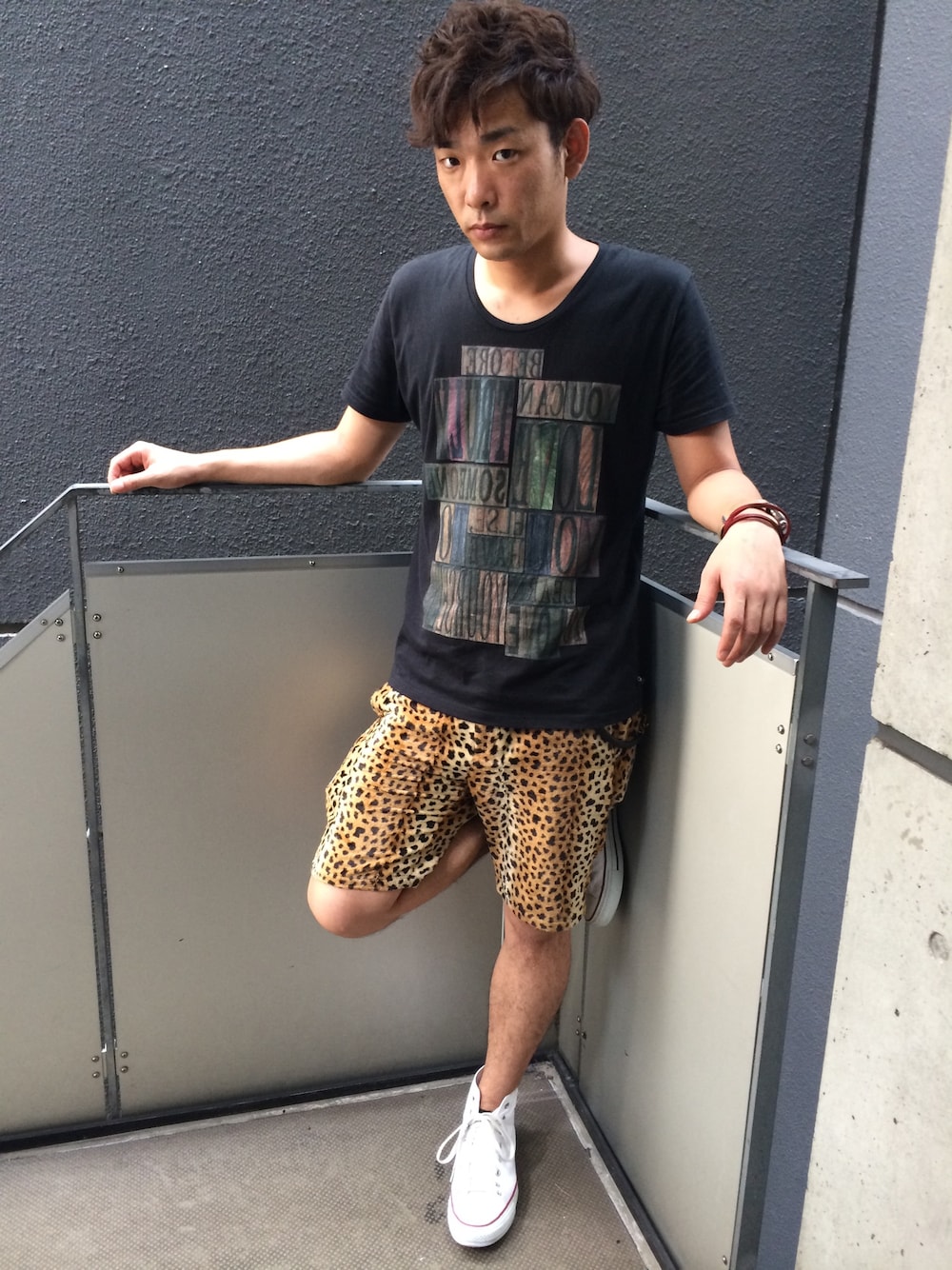 イシハザ ハザマ陽平のスラックス「AMERICAN RAG CIE レオパードパイルショートパンツ 111-AKJ-M132-PT063 LEO-1」を使ったコーディネート