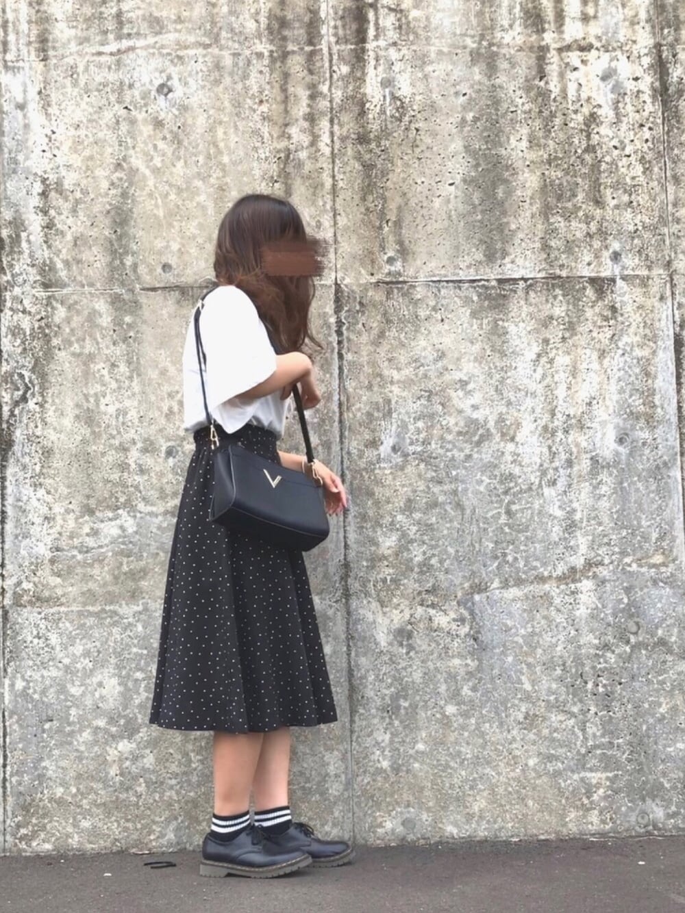 閲覧ありがとうございます😊 ・・・・・・・・・・・・・・・・・・・ モノトーンコーデのスカートverです。 ドットスカートで女の子らしさを+ トップスはシンプルな無地の白でコーデに明るさを+ さらにベルスリーブなので腕の太さカバーをしつつ、おしゃれに着こなせます! 全体的にモノトーンでまとめて落ち着いた印象に!