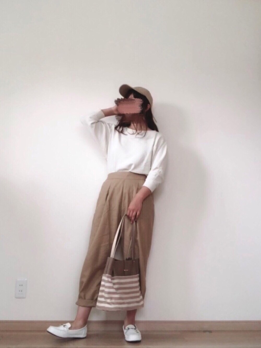 閲覧ありがとうございます😊 ホワイト×ベージュコーデです。 UNIQLOのワッフルTは七分袖で手首見せ、 studio CLIPのコットンパンツはロールアップして足首見せで抜け感と細見え効果✨ ナチュラルカラーなので落ち着いた印象に!