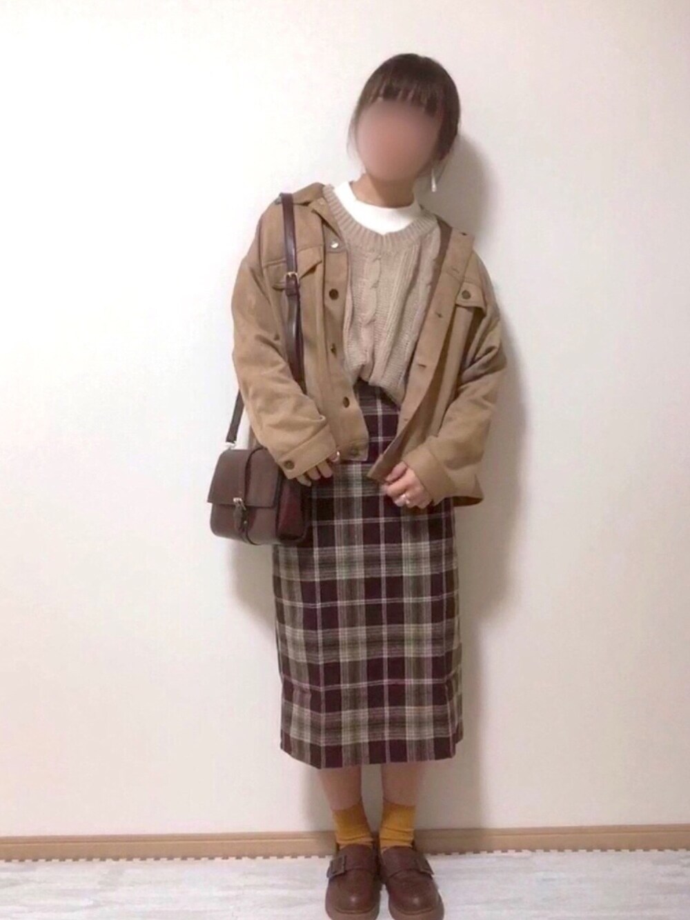 閲覧ありがとうございます😊 1週間ぶり?のガーリーコーデです💓 タイトスカートのチェック柄がレトロっぽい感じで好き😍 ロング丈でスタイルアップにもなってGOOD👍 全体的にベージュ・ブラウン系でまとめて、顔の近くに白を持ってくることで明るく見せることができます☀️ インスタもよかったら見に来てください🙇♀️ @nagi_nanami プロフィールからも飛べます🕊