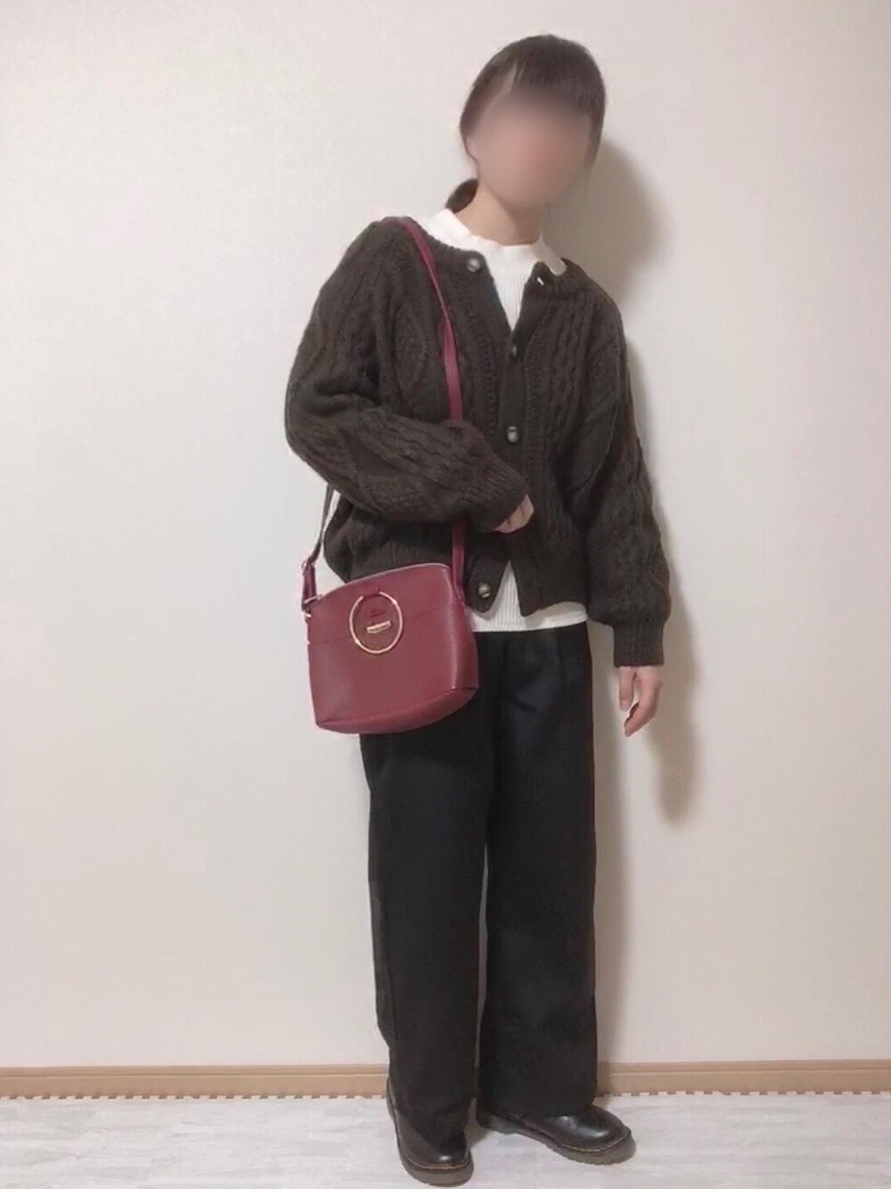 閲覧ありがとうございます😊 本日はお昼に… ダークトーンをメインにして、白をチラ見せすることで暗すぎを軽減! 赤バッグを差し色に🍎 インスタもよかったら見に来てください🙇♀️ @nagi_nanami プロフィールからも飛べます🕊