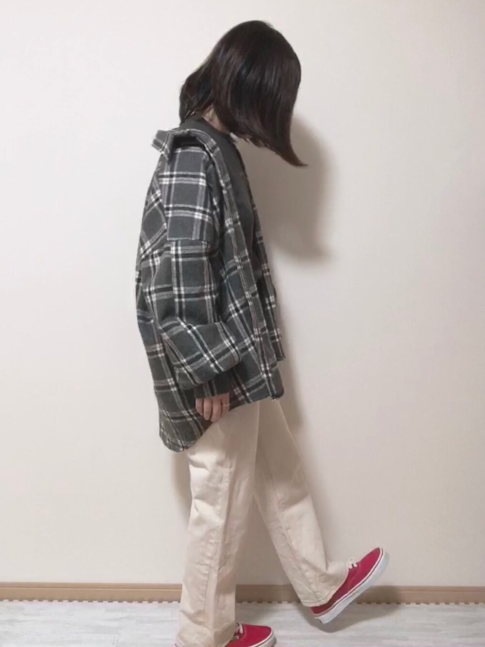 閲覧ありがとうございます😊 シンプルカジュアルコーデです。 チェックジャケットのゆる感めっちゃ好き。 白デニムでシンプルにまとめて、赤スニーカーで色をプラス! インスタもよかったら見に来てください🙇♀️ @nagi_nanami プロフィールからも飛べます🕊