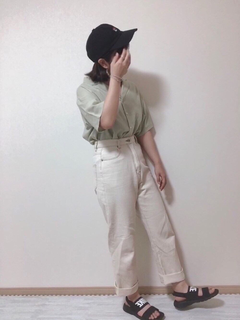 閲覧ありがとうございます😊 GUシャツの着回しコーデです。 白デニムと合わせて、キャップとサンダルは黒でまとめました! ロールアップにスポサンがよく合う🙆♀️ インスタ▶︎@nagi_nanami ツイッター▶︎@naginagi04217