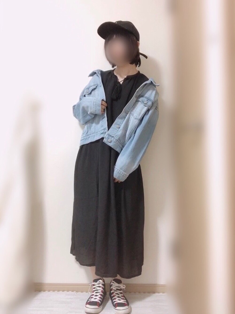 見ていただきありがとうございます😊 ワンピースとデニムジャケットで秋コーデにしてみました! キャップとスニーカーでカジュアル感をプラスしました。 インスタ、ツイッターも良かったら見に来てください🙇♀️ プロフィールから飛べます🕊