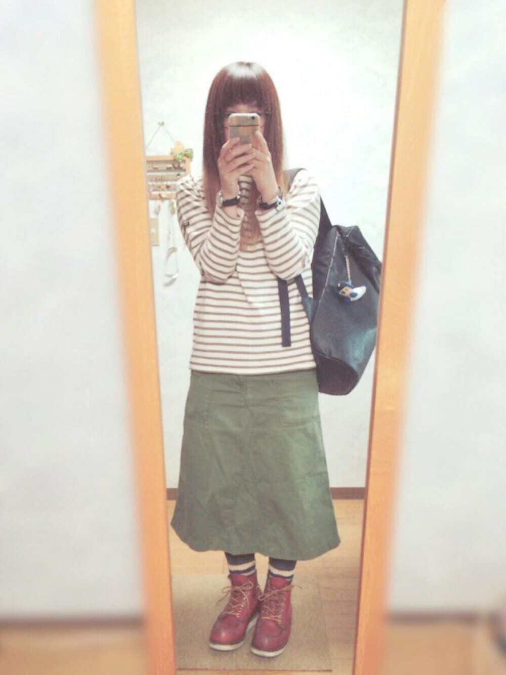 おじいさんのスカート「チノベイカースカート」を使ったコーディネート