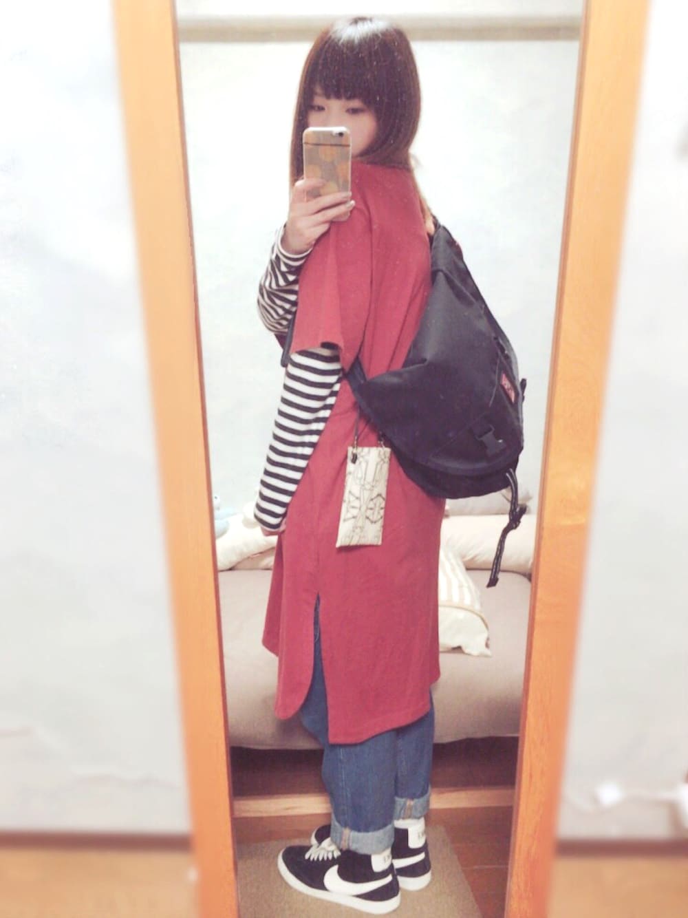 真夜中更新🌛 Chromeのフィット感が心地よい〜 ポケットがないワンピースを着た時用に モバイルポーチを購入しました😊 私の周りの小物達は the teachersばっかり🤓🔥 お気に入りは紙飛行機柄です✈︎