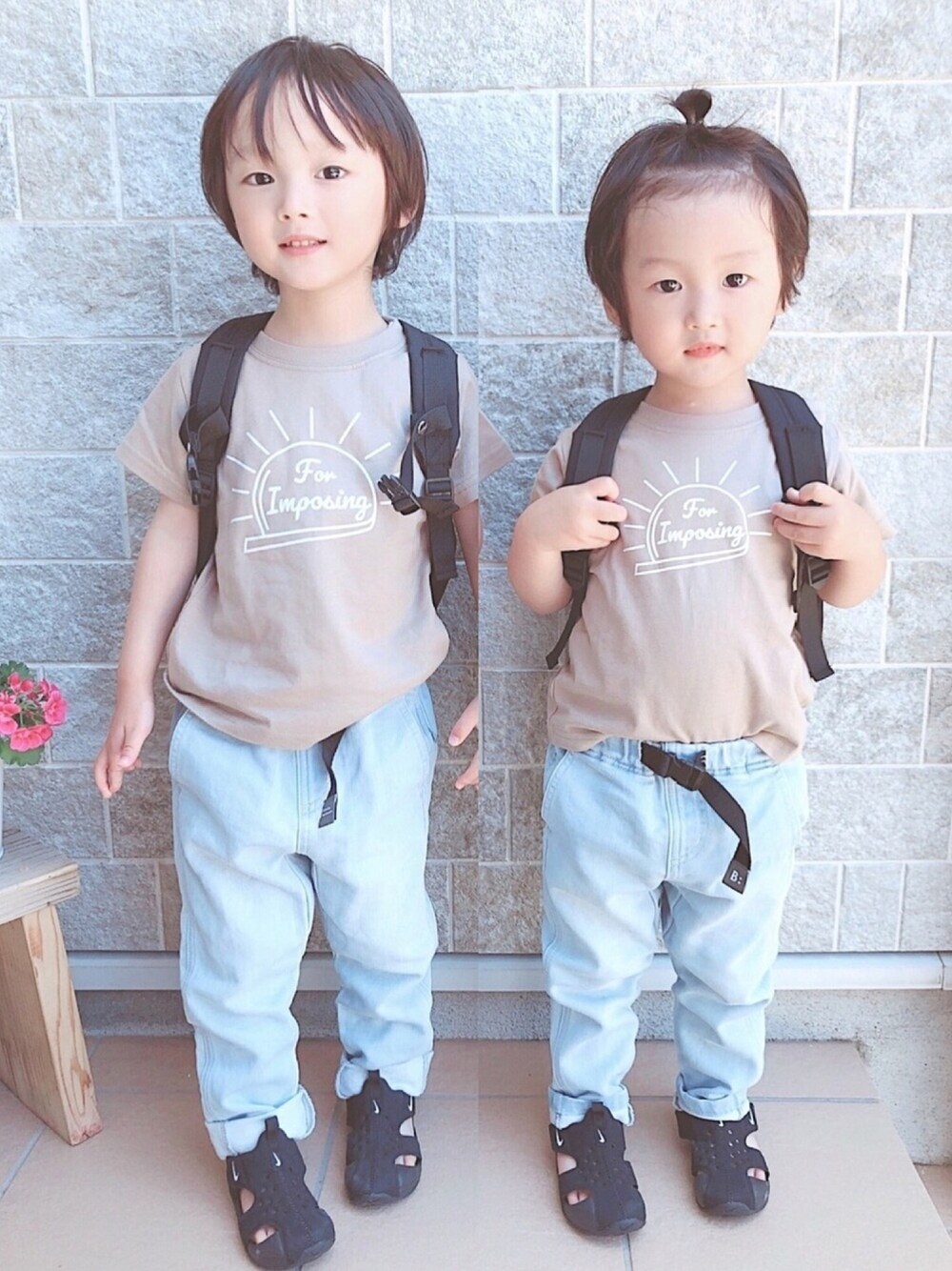 デビロックのTシャツ 初めて買ったけど、可愛いし安いし 生地もしっかりしてて最高〜\( ˆoˆ )/💓 子供の写真あるあるだけど 何回撮ってもどっちかが目つぶっちゃて(笑) 諦めて目があいてる写真を 繋ぎ合わせました😅 だから長男の手が切れてるのは 心霊写真じゃないですよ〜🤫笑