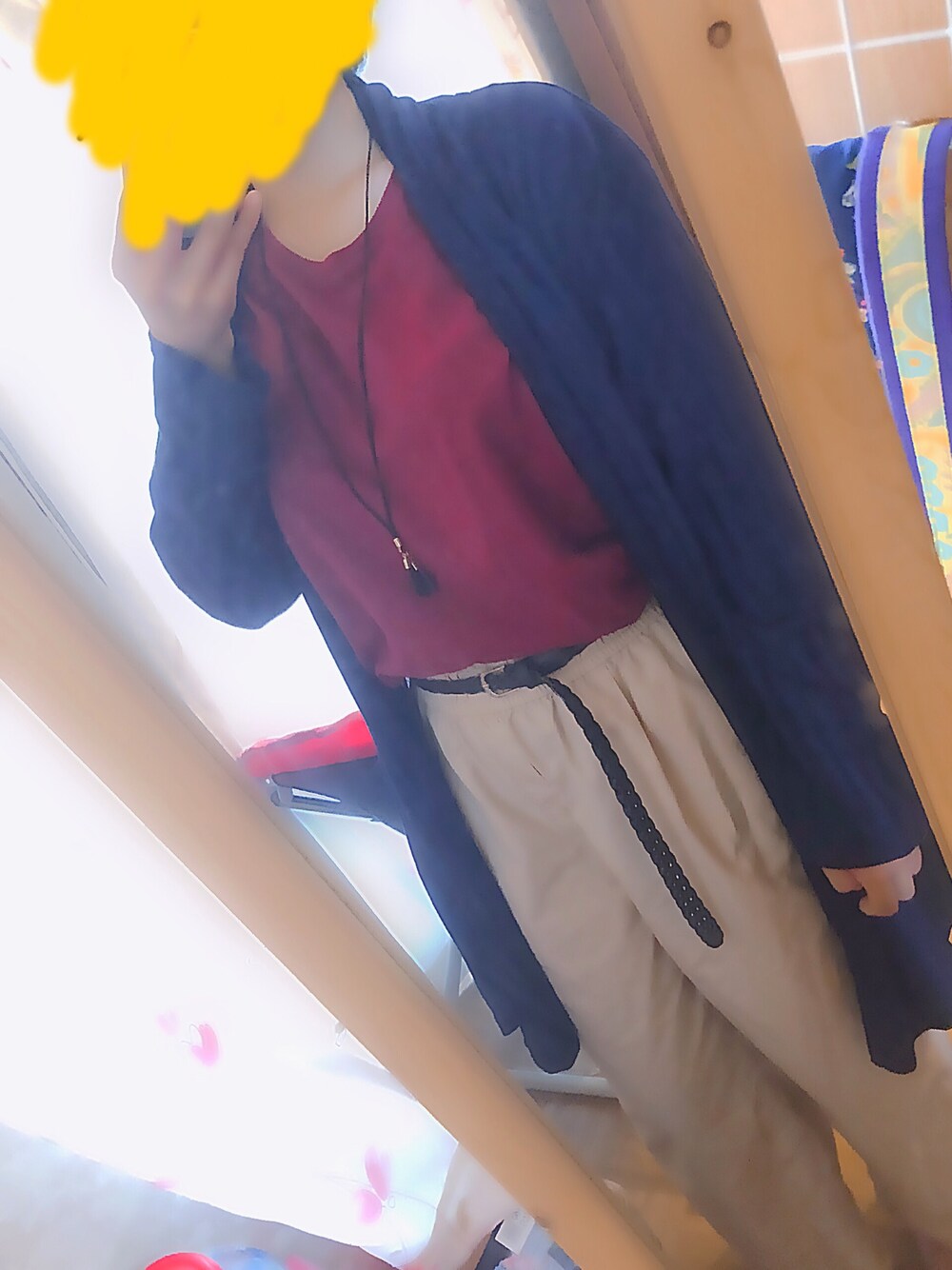 今日は久々に投稿してみました! 最近ボルドー色にはまってしまいました☺️今日は肌寒いので1枚羽織っていこうとおもいます!