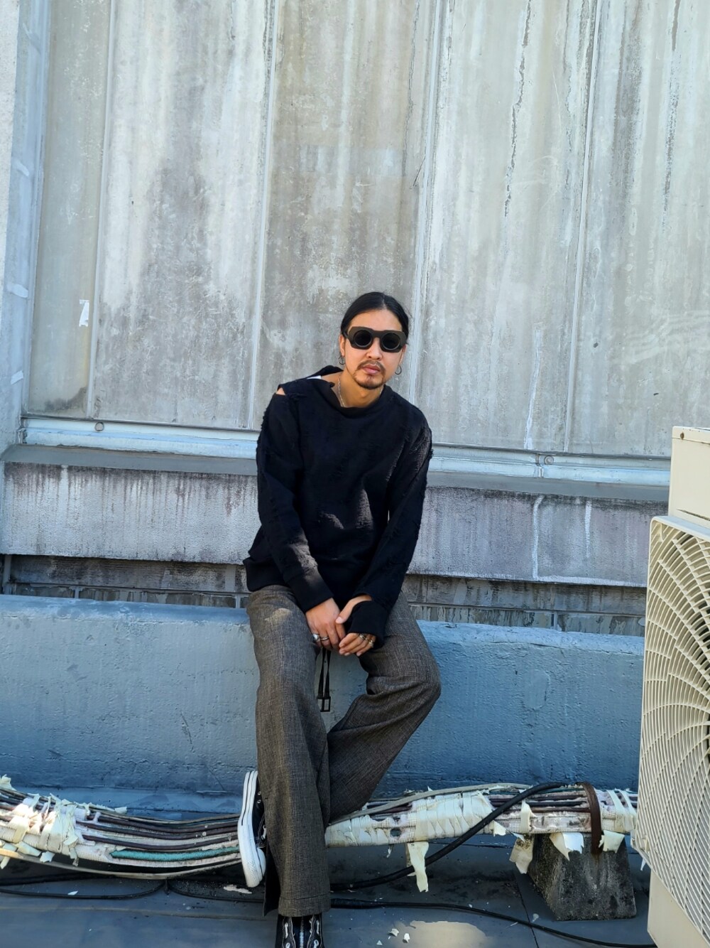 HDKのスウェット「RIPPED REVERSE WEAVE SHIRT(ORIGINAL BORO JACQUARD)」を使ったコーディネート