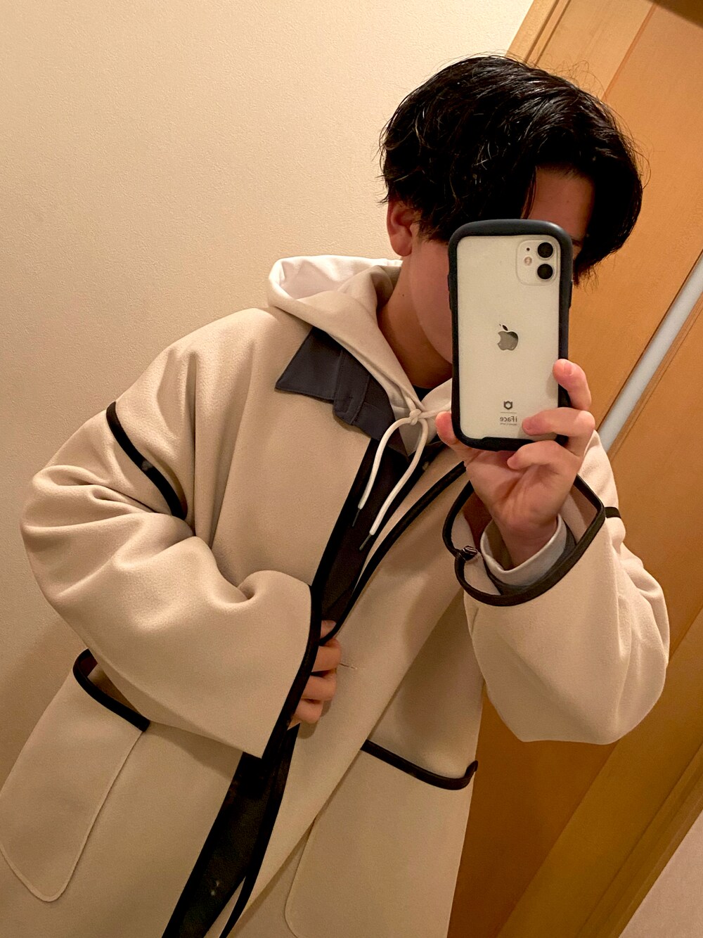 Hiroのノーカラーコート「【累計販売枚数3万枚突破!】ニットメルトンノーカラーパイピングコート」を使ったコーディネート