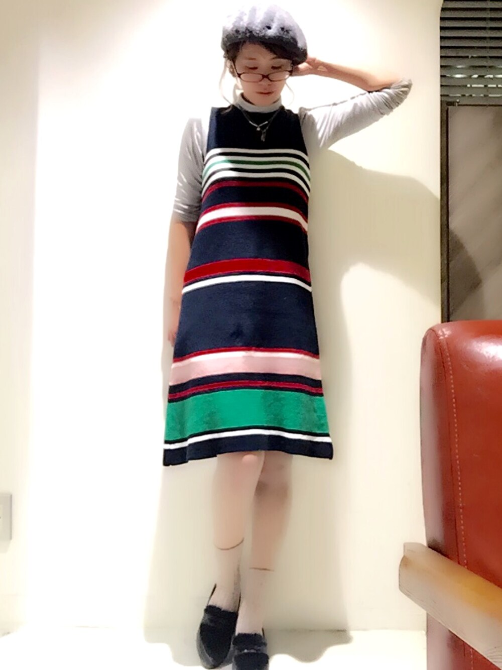 営業スタイル 昨日買ったニットタンクのマルチボーダーワンピ あったかくなってきたなー。 もっとあったかくなって欲しい。 花見したい。