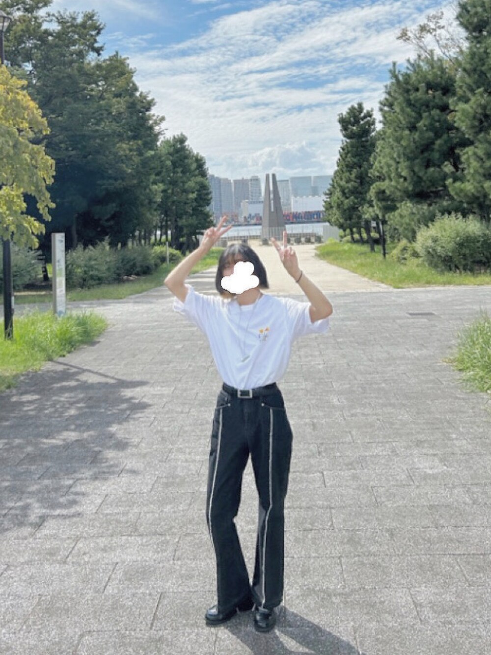 今年の夏です! GUとnowarttのコラボでリリースされていたTシャツがめちゃくちゃかわいくて衝動買いしちゃいました ボトムスのフレアデニムもスタイル良く見えるのでおすすめです!