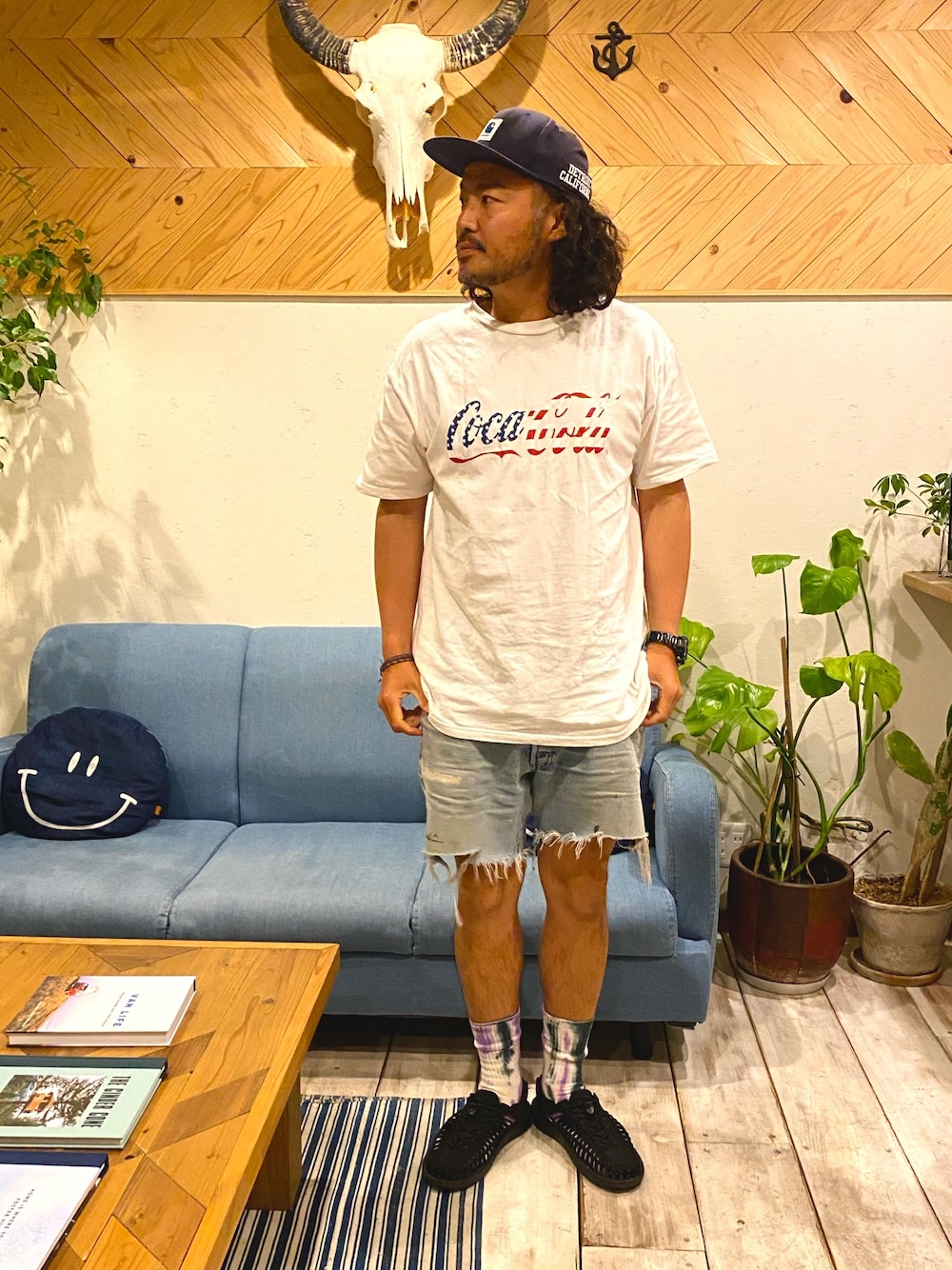 FBに過去の投稿が上がってて 3年前の今日はケツメイシのライブに行ってたみたい😎☝️ その日もこのTシャツでした🥤🇺🇸 TシャツはSURT パンツはVINTAGE Levi's 501 66modelのカットオフ 靴下はユニバーサルオーバーオール、今年人気のタイダイ染めカラー サンダルはキーンのユニーク キャップはカーハートxロンハーマン
