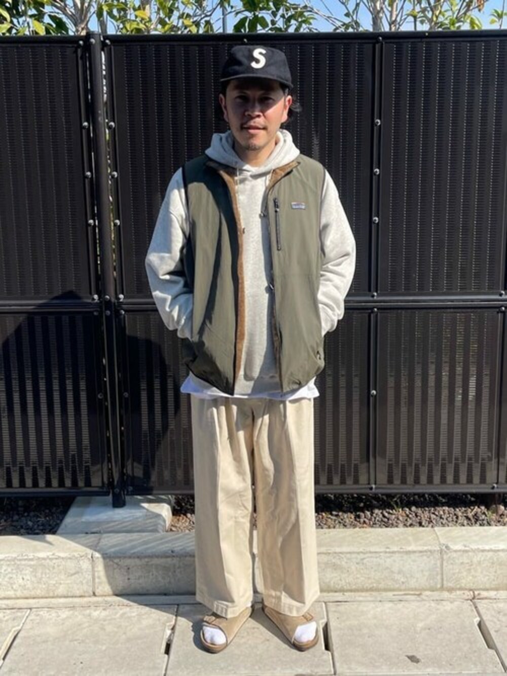 リバーシブルの汎用性の高いベストを使用したワークコーデ◎ 身長177 ベストL フーディーL パンツM