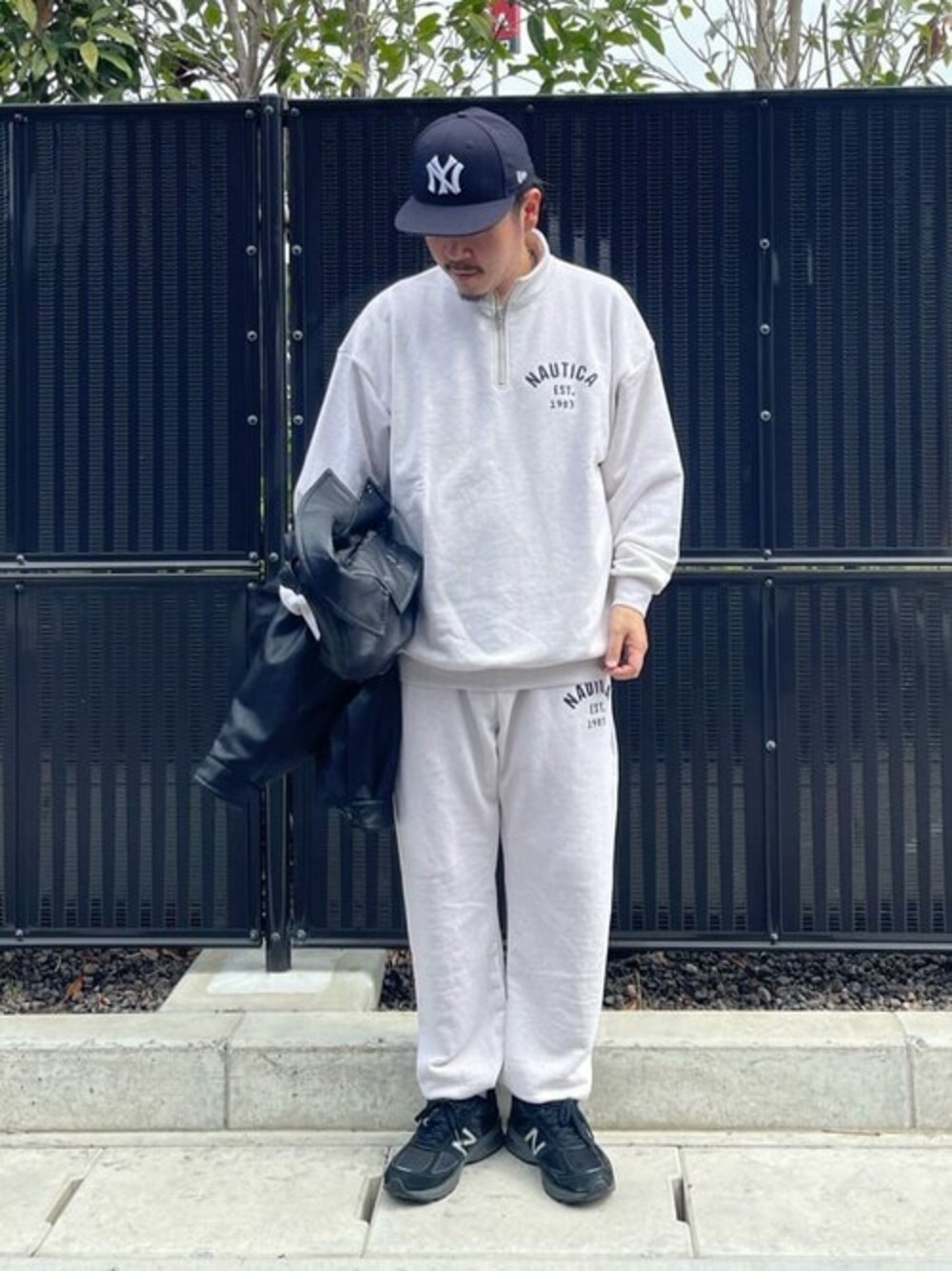 ノーティカのセットアップコーデ。サイズ感は今までより少しコンパクトになってます!フェイクのレザージャケットの雰囲気が重厚感もあって抜群にかっこいいです◎