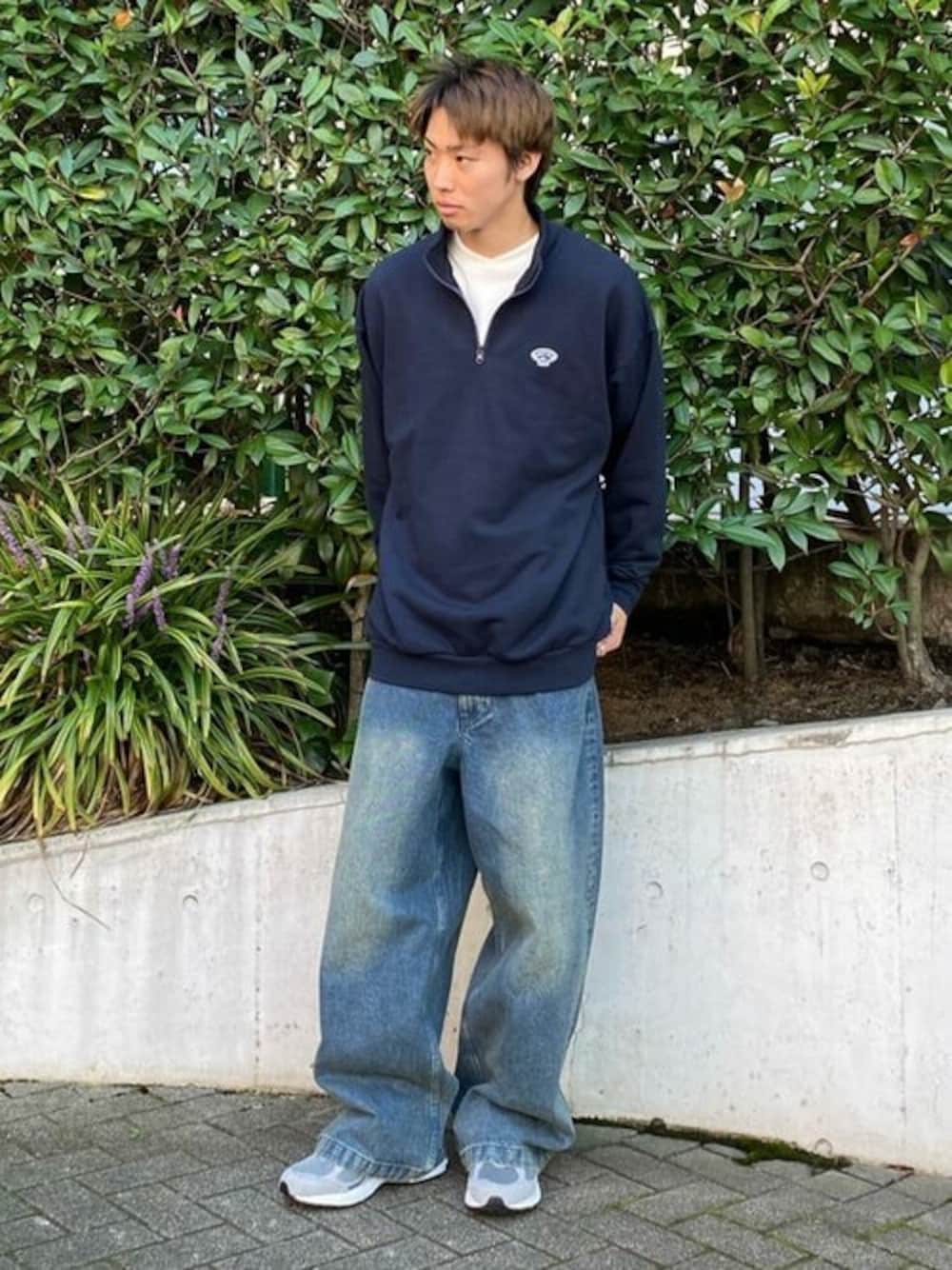 ノーティカのハーフジップを使ったカジュアルコーデです!全体的にオーバーサイズにすることでリラックス感をプラスしています!