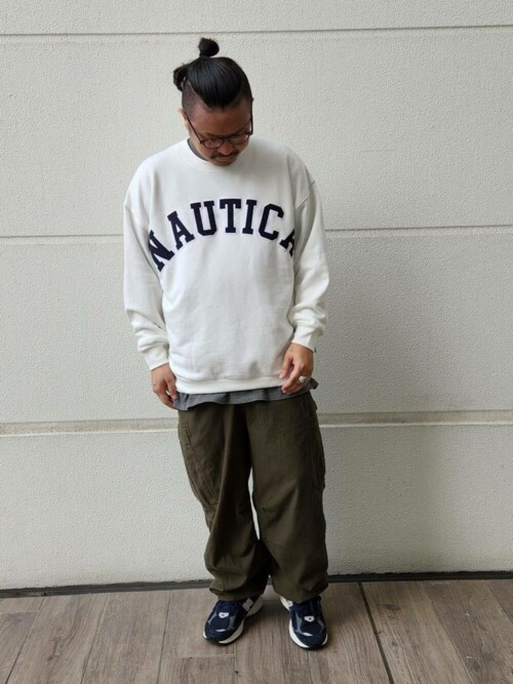 FREAK'S STORE HEAD OFFICE MEN(FREAK'S STORE OFFICIAL)のスウェット「NAUTICA/ノーティカ Arch Logo Crewneck Sweatshirt/アーチロゴ クルーネックスウェットシャツ」を使ったコーディネート