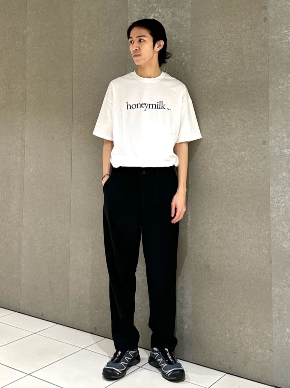 FREAK'S STORE HEAD OFFICE MEN(FREAK'S STORE OFFICIAL)のTシャツ/カットソー「限定展開 ビッグシルエット ロゴプリント クルーネック Tシャツ / honeymilk」を使ったコーディネート